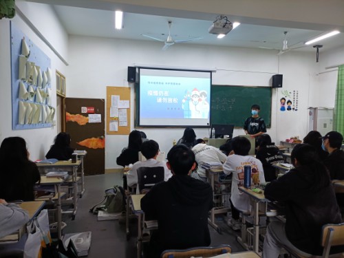 防疫教育小课堂于4月18日正式开课,通常设于班级每天首课前5分钟进行,内容涵盖七步洗手法、戴口罩、收快递、少聚集、打疫苗、强健身等。此次专题小课堂做到了学习宣传教育全方位、广覆盖、无遗漏,有效扩大了疫情防控知识的覆盖面和知晓率,使同学们了解了疫情防控知识,增强了医学知识实践的能力,努力践行“筑牢疫情防线,守护校园安全”。