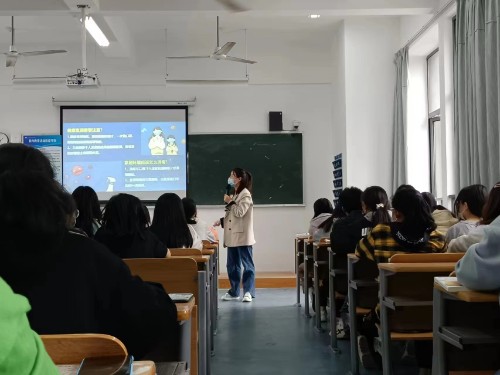 5月12日下午,在金竹校区11-102教室,冯戴豪老师正在给人文学院的智慧健康养老服务与管理专业学生讲授《老年心理维护与管理》课程,冯老师在课前分享老人故事,讲述了疫情防控常态下,关爱老人不止步,适时引入了近日开展的防疫教育小课堂之《个人防护指南》,简单的讲解了新冠肺炎症状、个人居家、外出和运动时防护小知识,提醒同学们在接种新冠疫苗后应继续做好个人防护,切实做到科学防疫,守护健康!